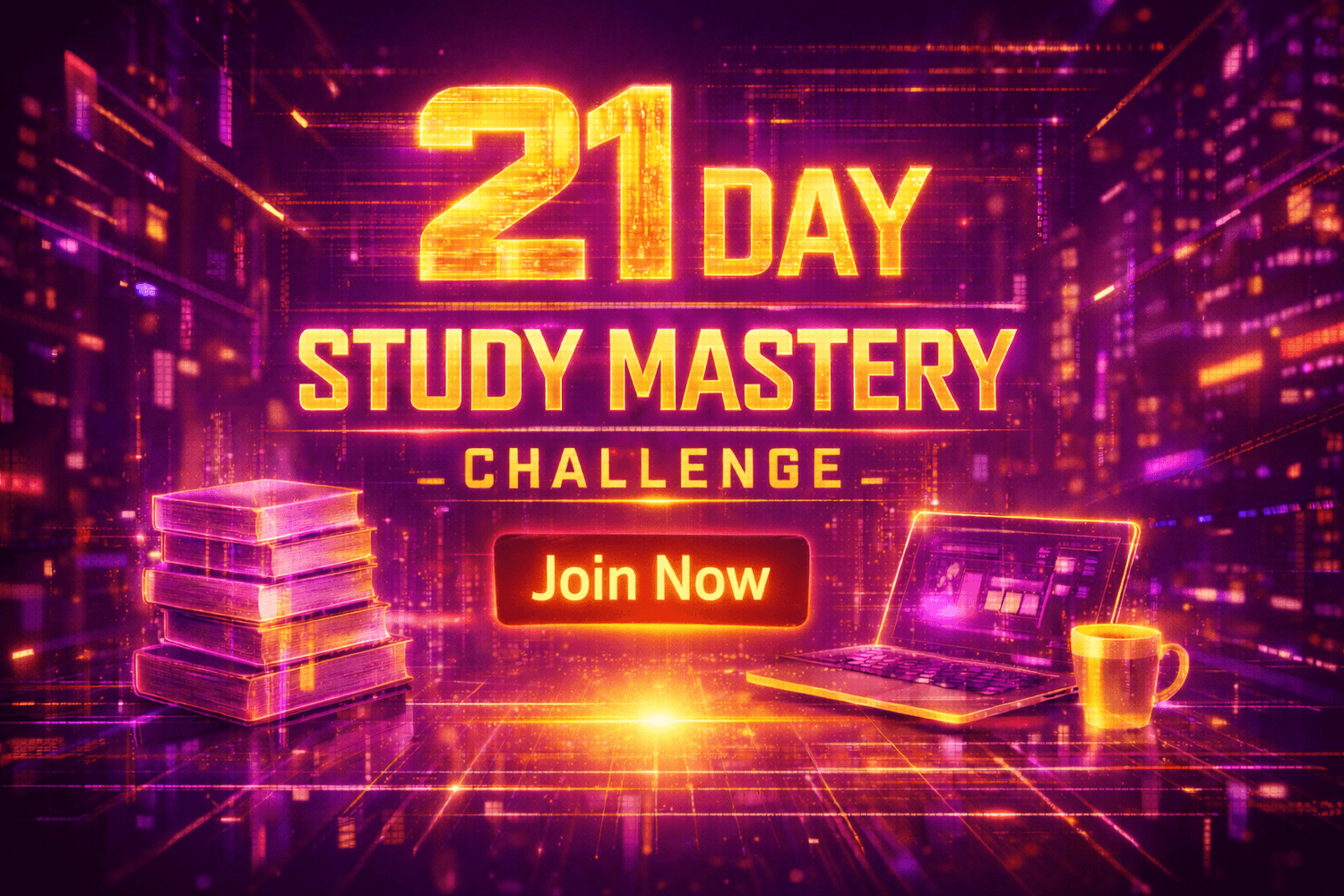 This 21-Day Study Mastery Challenge designed to permanently change how you study, using neuroscience and proven methods that top students use without even realizing it.
